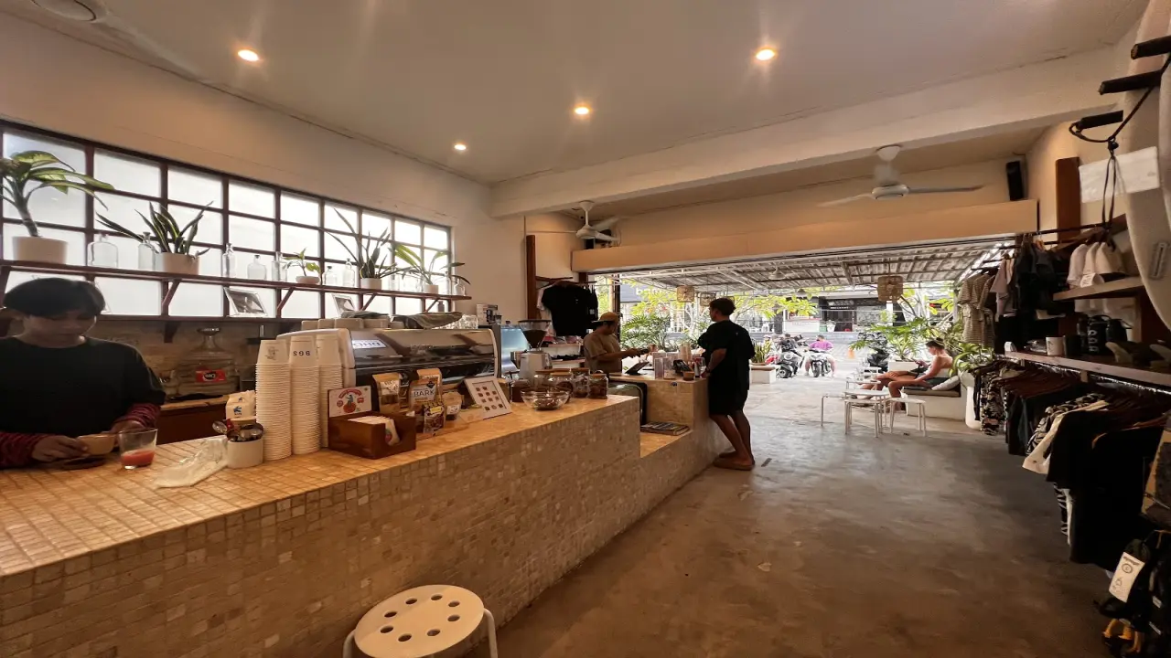 Step into Suka and you’ll catch the hiss of the espresso machine, the smell of fresh beans, and the chatter of surfers swapping wave stories. The setup is bright and breezy, with a relaxed Bali meets coastal vibe.