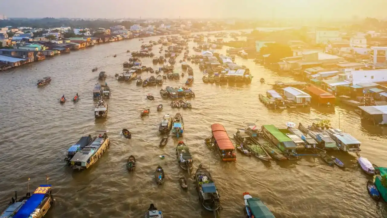 Foggy morning. Boats loaded with fruit and veggies. People are shouting everywhere. The sun is sparkling on the water. You paddle along, grab a mango, sticky fingers and all. Chaos but it feels alive.