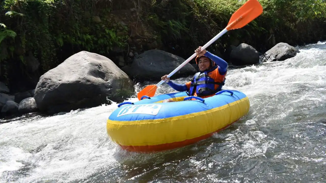 Telaga Waja is a beast. Longer, faster, more adrenaline. Perfect if you came for chaos. You’ll paddle, scream, laugh, and maybe cry a little inside (in a good way). Forests, waterfalls, and even a few local farms peek through. Experienced rafters love it. Bold beginners might try it too.