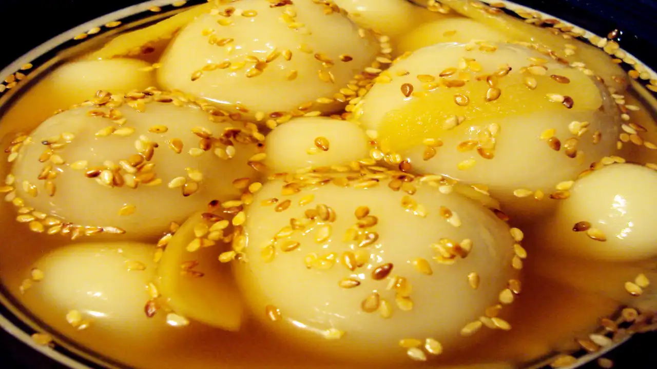 Warm, chewy rice balls stuffed with mung bean paste, floating in ginger syrup. It feels like someone handed you a tiny bowl of comfort.