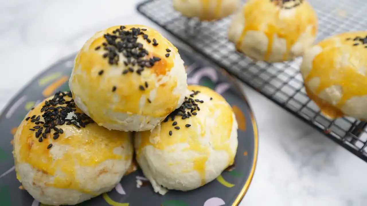 Flaky outside, rich salted egg center. A crowd favorite in bakeries.