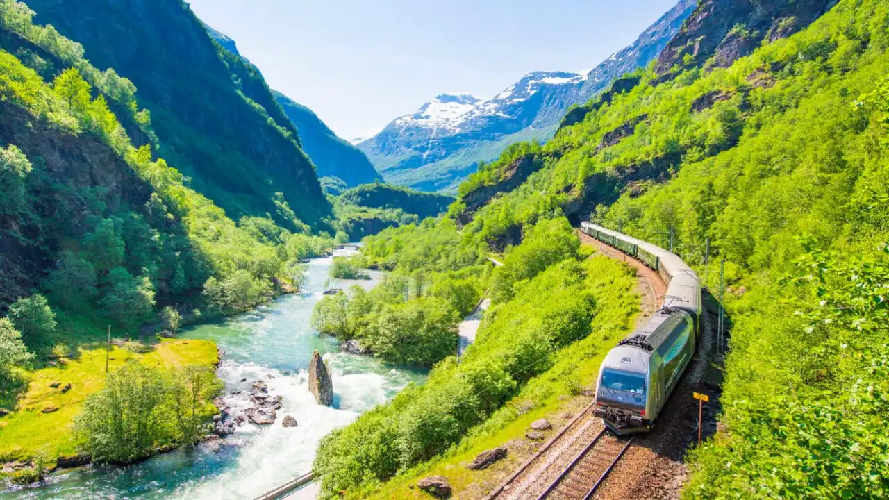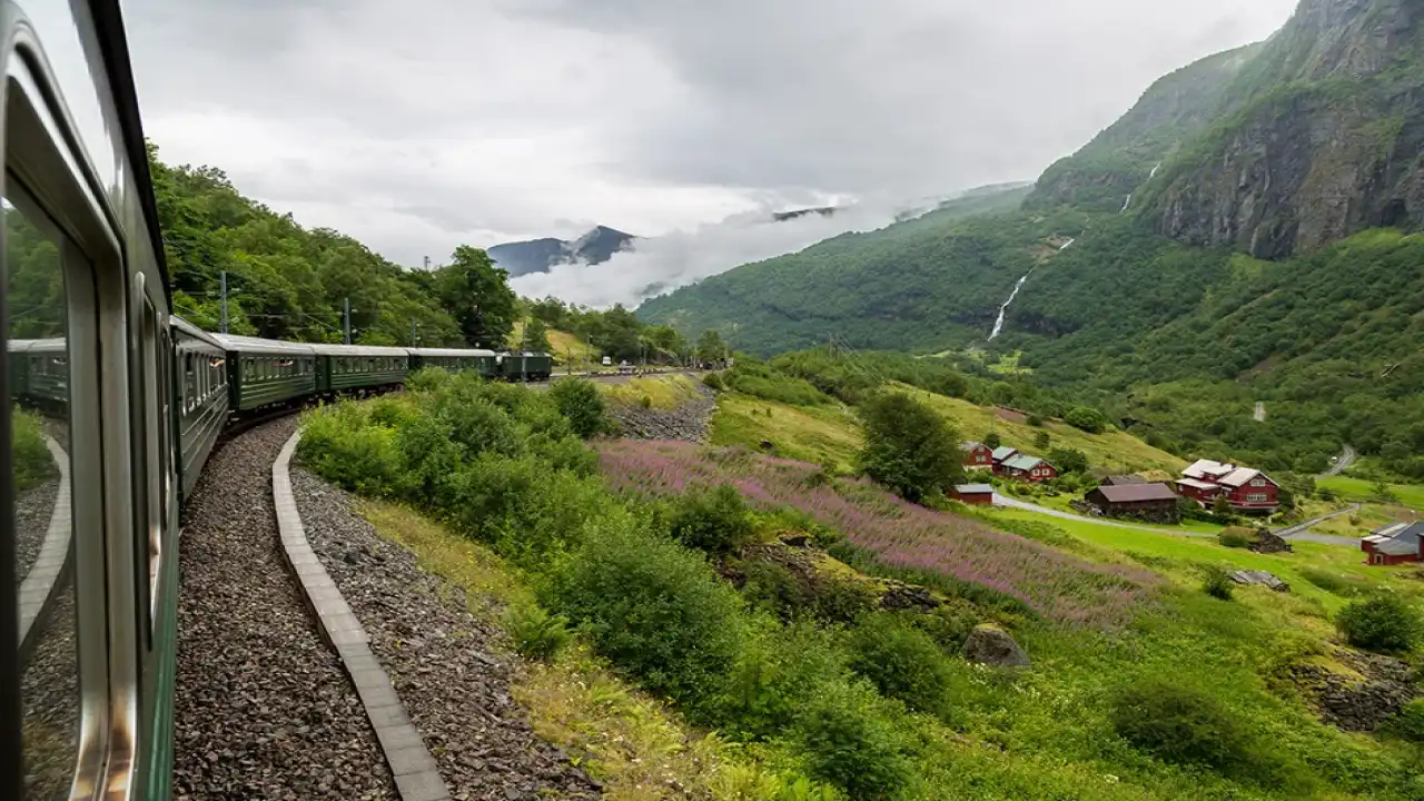 Northern Europe doesn’t apologise for bad weather or sudden cold snaps. This route embraces that attitude. You start among forests, then the train climbs until the trees vanish and you’re left with wide-open plateaus that feel lunar in winter and gently washed-out in summer. Lakes mirror the sky in unsettling perfection. Hardangervidda is the section that really gets people. The landscape is vast and borderline overwhelming. Then the descent begins, and you enter fjord country where waterfalls hang from cliffs like loose threads.