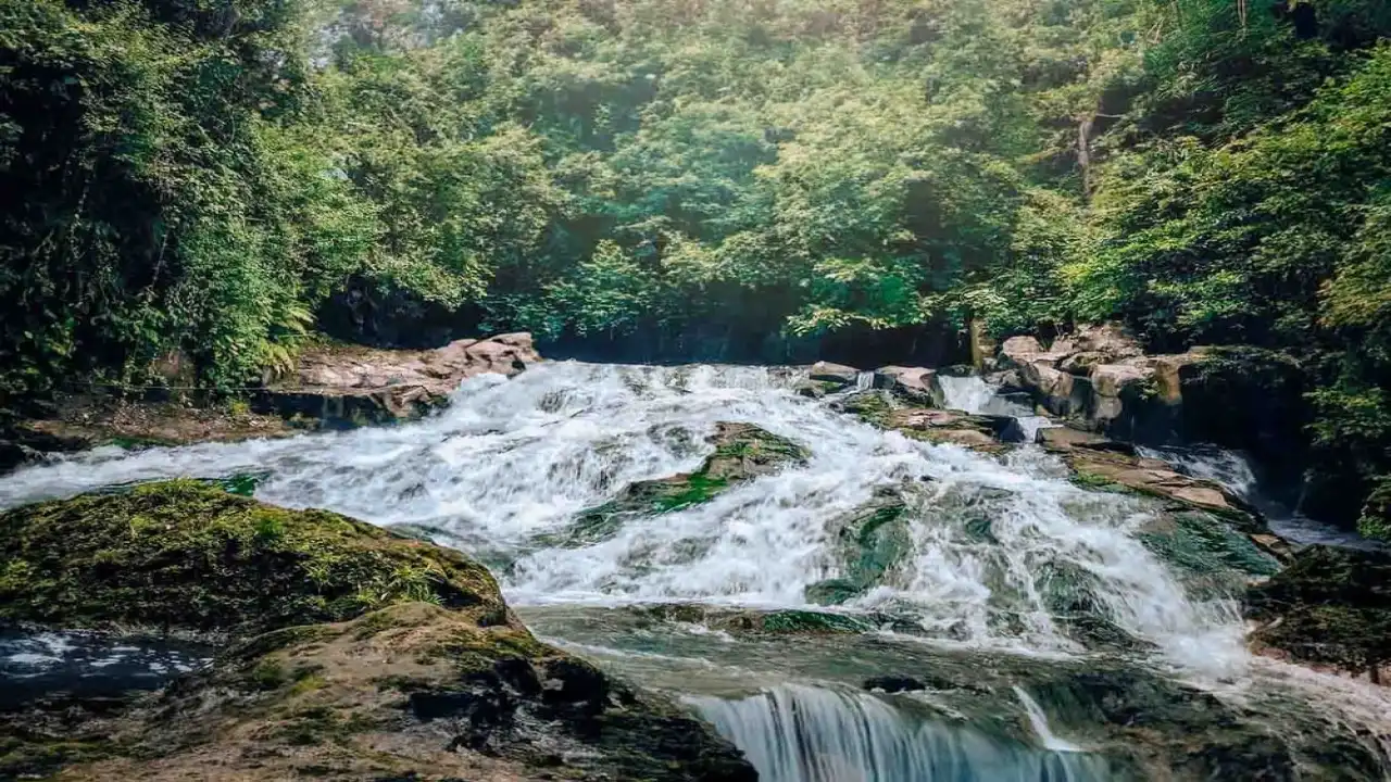 Not polished and famous, but still one of the peaceful places. The water slides diagonally over sloping rocks, ropes tied in place to help you climb. It feels wilder, like you’re sneaking into a place that nature didn’t plan to share. Fewer crowds here. Just jungle sounds, rushing water, and the occasional scooter echo in the distance.