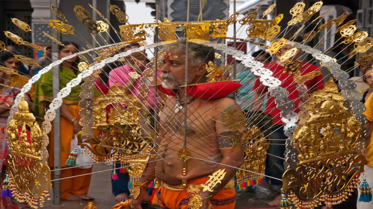 The core activity is the kavadi procession. Devotees transport large, heavy, highly decorated structures (kavadis). After weeks of strict mental and physical preparation, some devotees demonstrate their ultimate faith by piercing their skin with hooks to either carry or balance these structures. Others carry large, symbolic pots of milk.